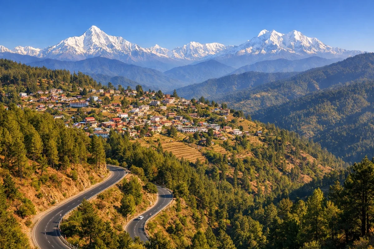 - By Road: At about 600 km from Delhi, the drive to Munsiyari is long but unforgettable. The route winds through Almora, Bageshwar, and Thal, offering breathtaking Himalayan views, cascading waterfalls, and charming little villages along the way.
